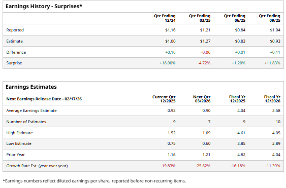 With a market capitalization of roughly $23 billion, the Oklahoma-based company is all set to report its fiscal 2025 fourth-quarter results on Tuesday, Feb. 17, after the close of U.S. financial markets. Ahead of the earnings release, analysts expect Devon Energy to report fourth-quarter earnings of $0.93 per share, marking a 19.8% decline from the same period last year. That said, the company has a history of outperforming expectations, having surpassed Wall Street’s bottom-line estimates in three of the past four quarters, with just one miss along the way.